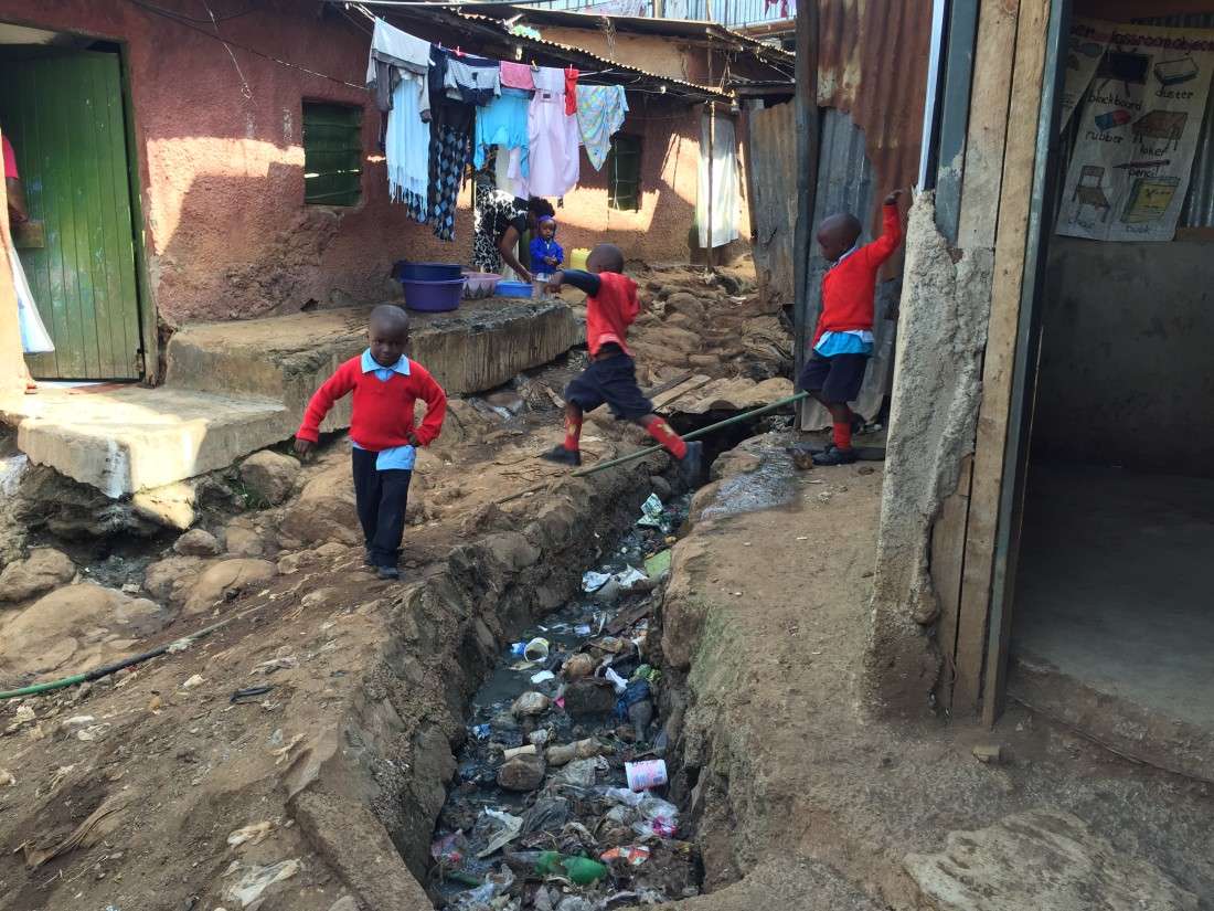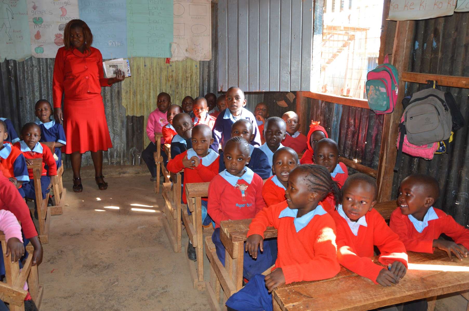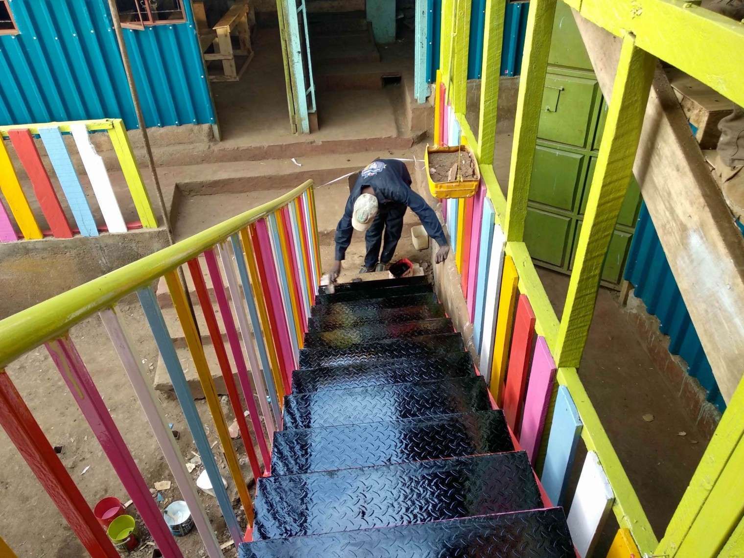 La nueva autopista que pasa por Kibera derribó la mitad de la escuela. Les hemos ayudado a construir una segunda planta en la mitad no afectada para que los niños puedan seguir recibiendo sus clases y comida.