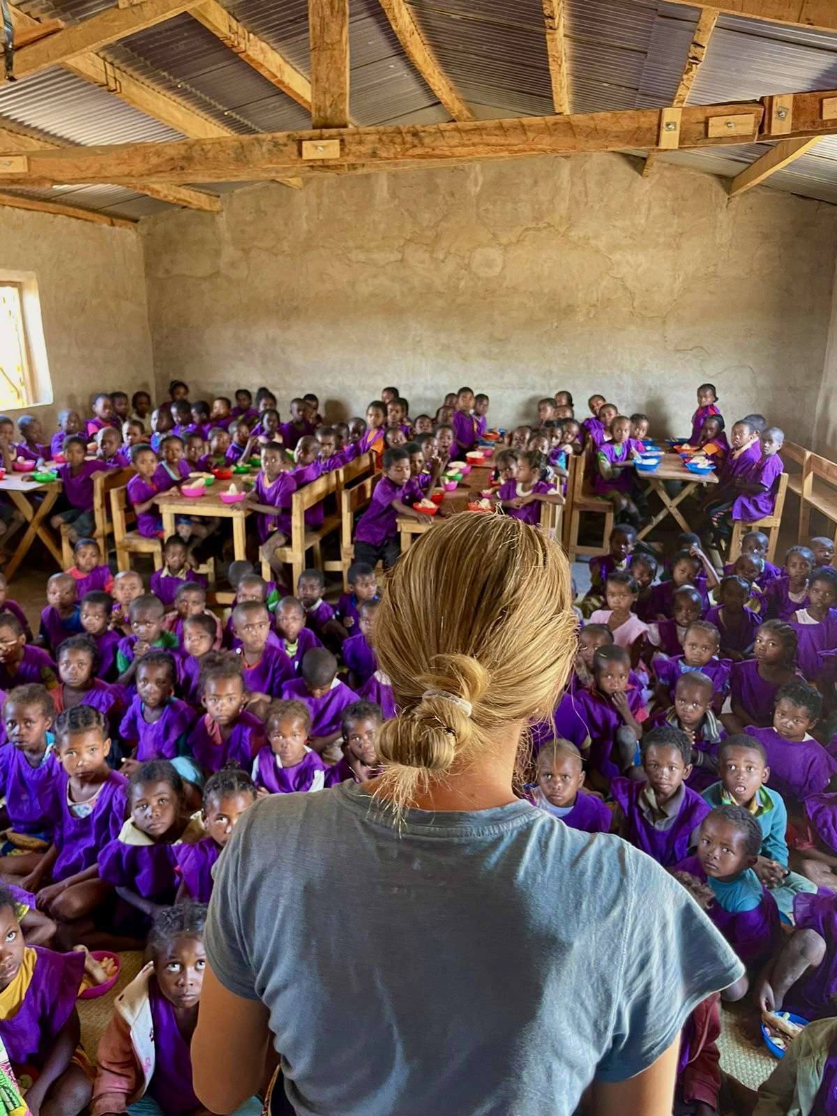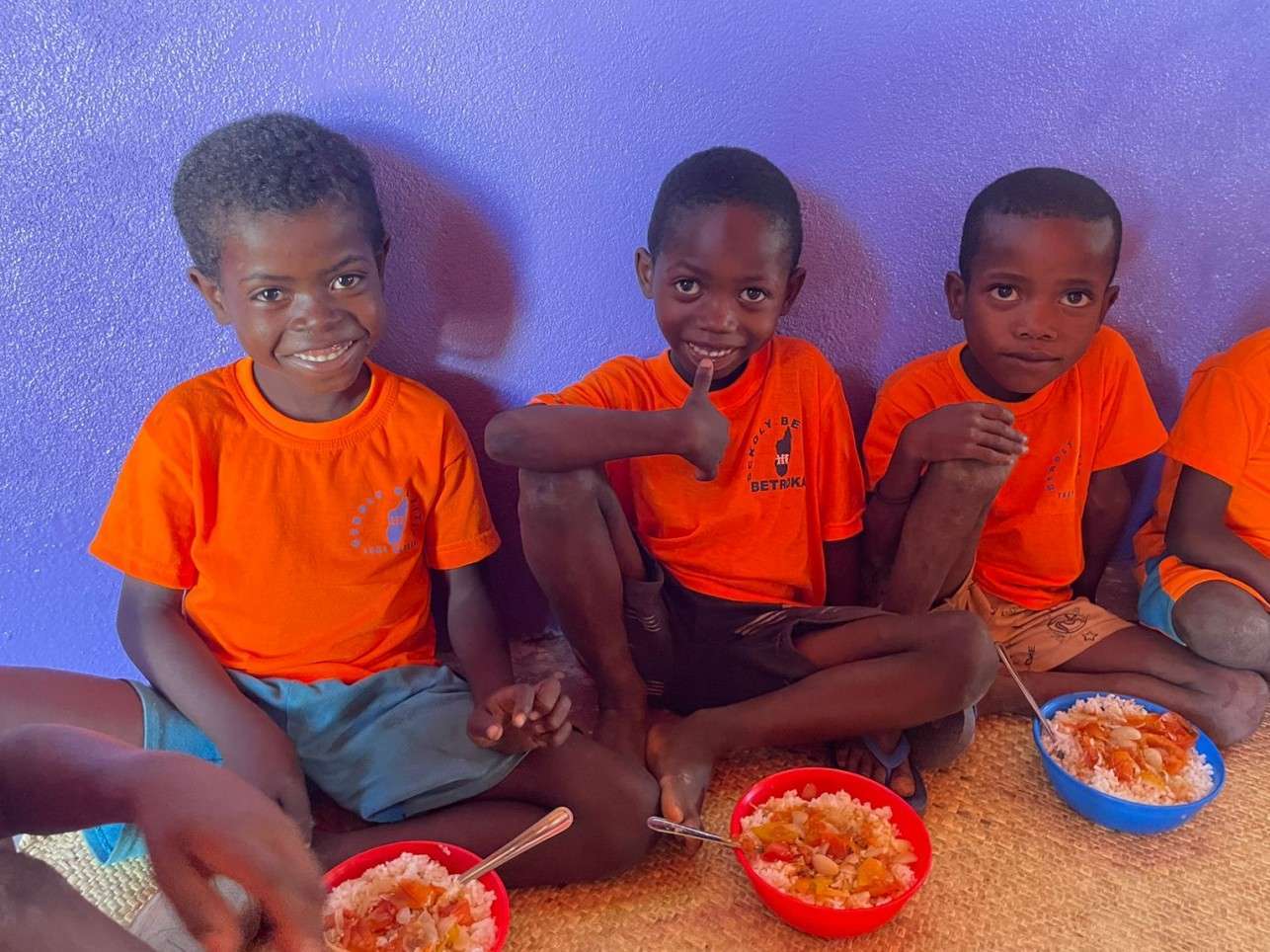 Escuela fundada por la familia Basso en el sur de la isla para alfabetizar a los niños de la tribu Bará. Después de tres años de intensa sequía, la escasez de alimentos aumentó. Compra de comida para los 150 alumnos de la escuela durante seis meses.
