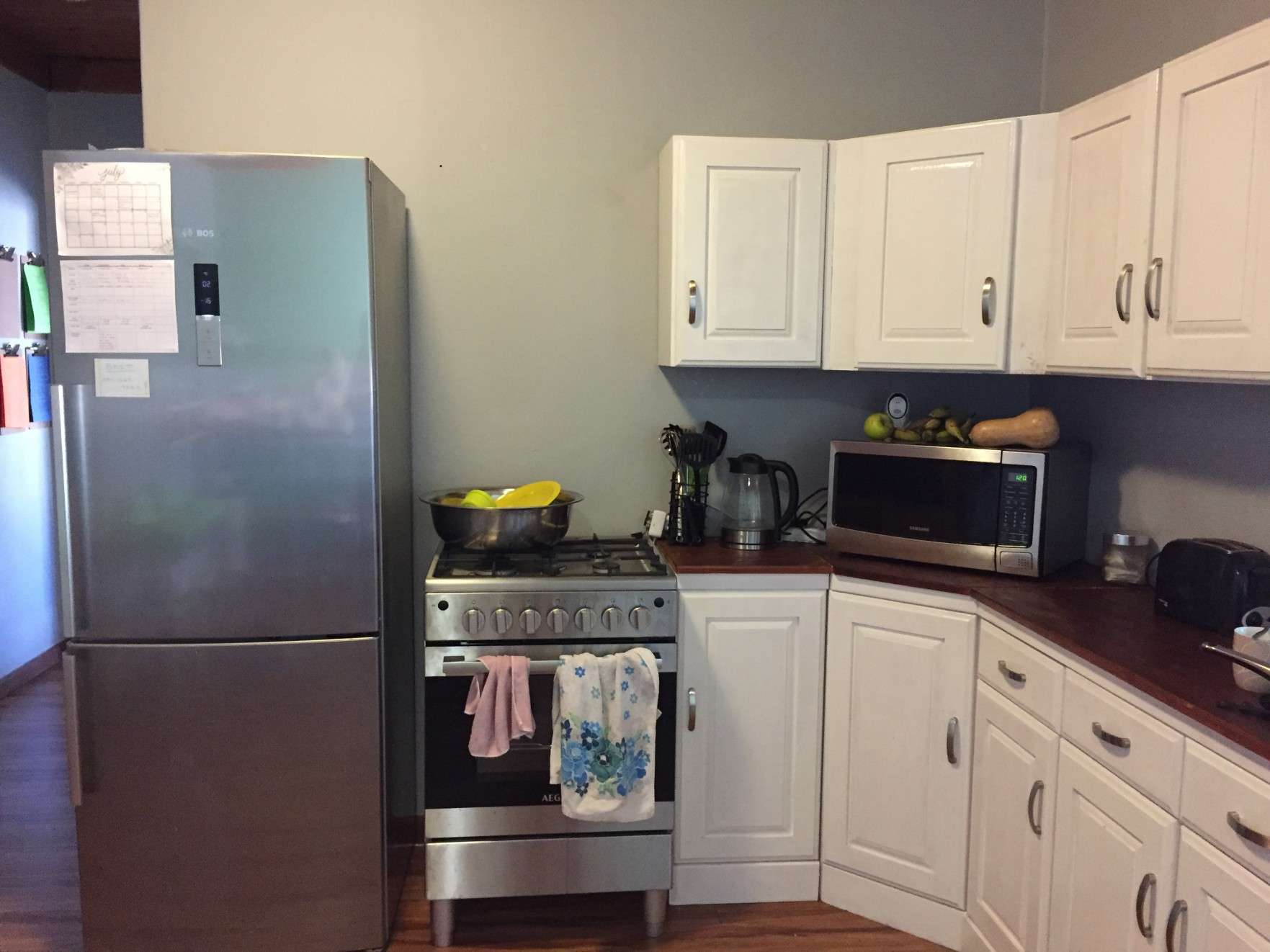 Compra de dos estufas, armarios de cocina, horno y procesador de alimentos. Gastos de leche en polvo y pañales para 6 meses.