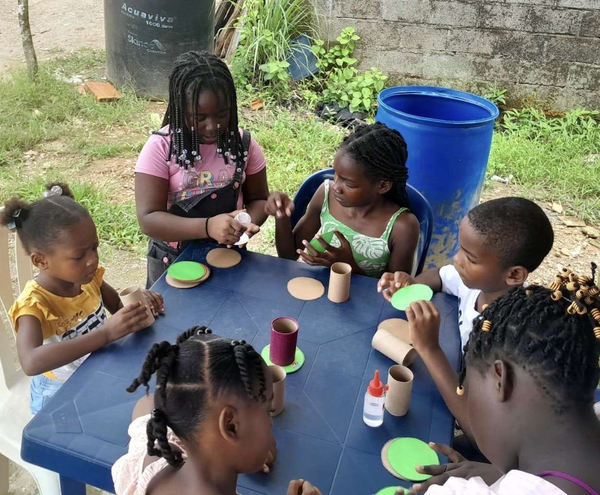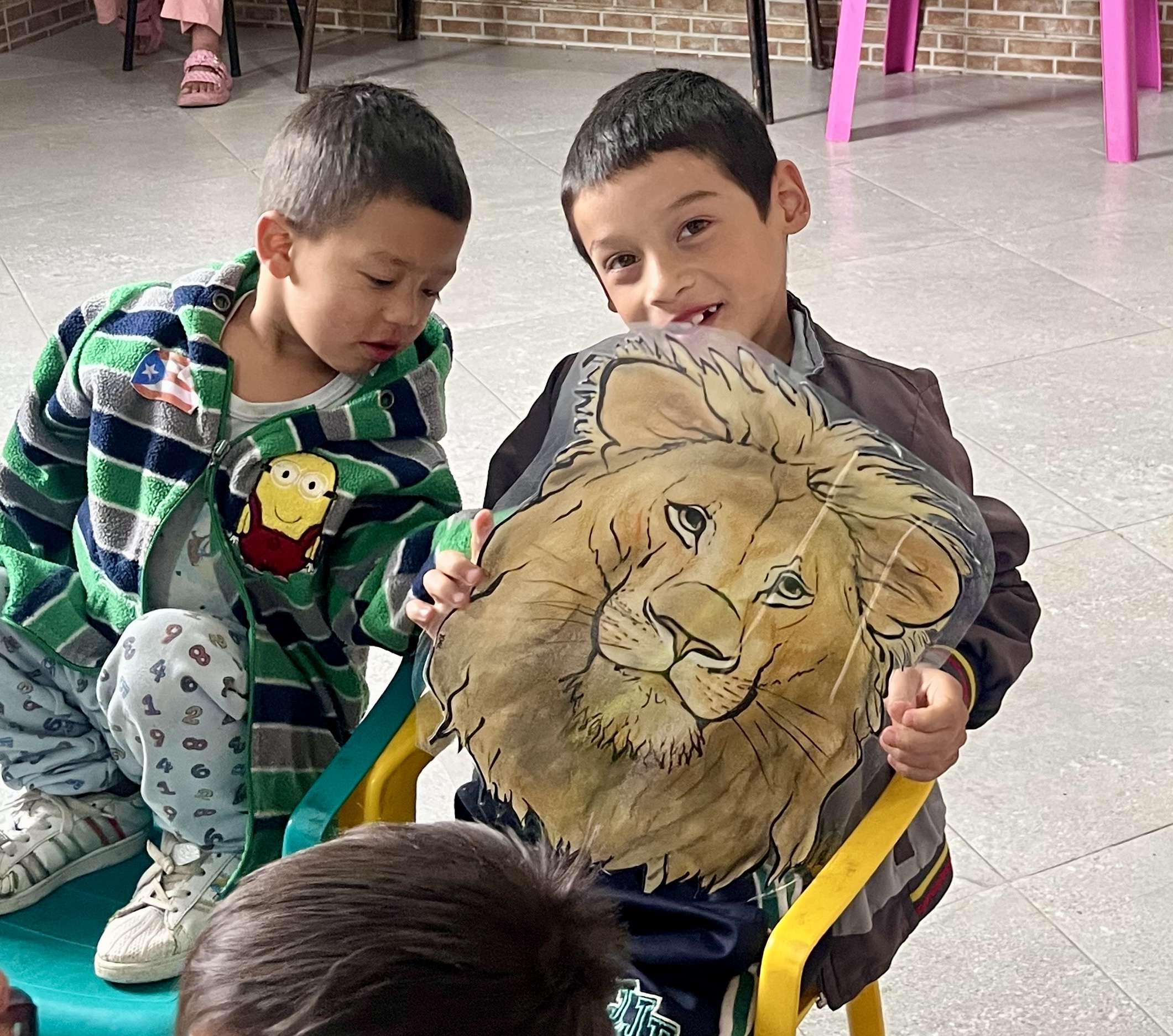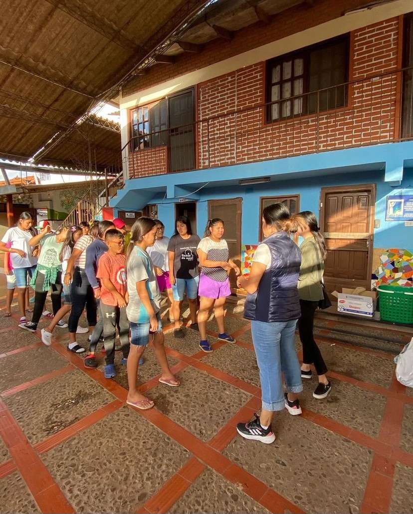 Compra de material didáctico para 200 niños de la selva del Chocó y para los profesores locales. Reparto de materiales para los niños del asentamiento de Ciudad Bolivar en las afueras de Bogotá y 8 packs para los profesores con lecciones para un año. Meriendas para los niños en dos actividades.